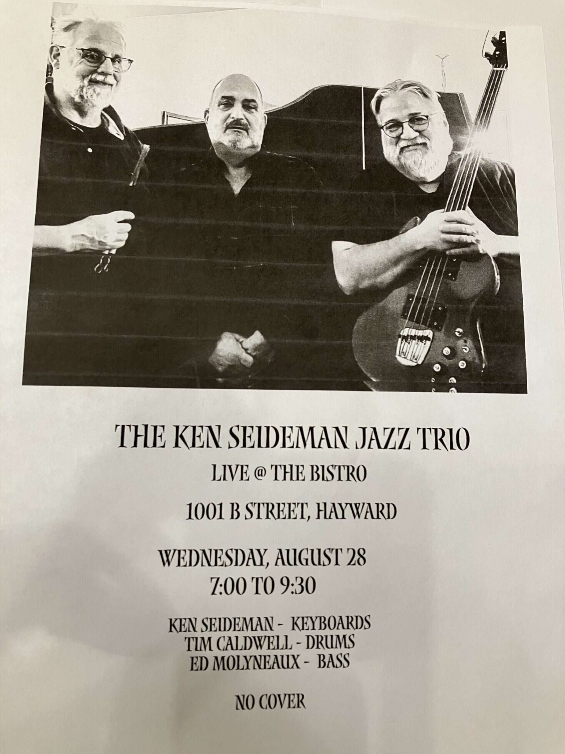 Join us for an unforgettable time of jazz with the Ken Seideman Jazz Trio. Immerse yourself in a night of swinging melodies and soulful harmonies as we bring our unique blend of traditional jazz, blues, and rock to the stage.